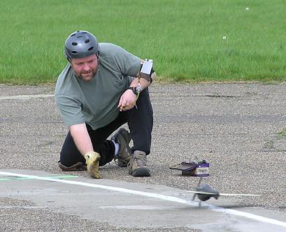 Mark is seen here getting a head start on Brian Turner at the start of a race