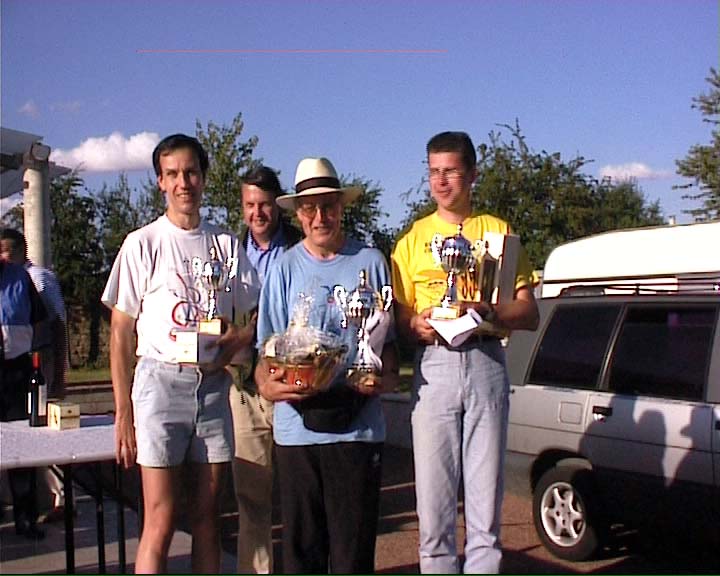 Events at Piennes are bliss compared with home contests - organisation is laid on, the circle surface is very smooth and the weather usually warm and calm. I travelled with Steve Smith and Colin Brown with fellow speed flier Dave Brewin completing the party. Crossing via the channel with an overnight stop at Mister Bed in Rheims, the site was reached about 10 a.m. on Saturday morning. Saturday night we lodged at the Hotel Aster in nearby Briey, very comfortable and quite picturesque.