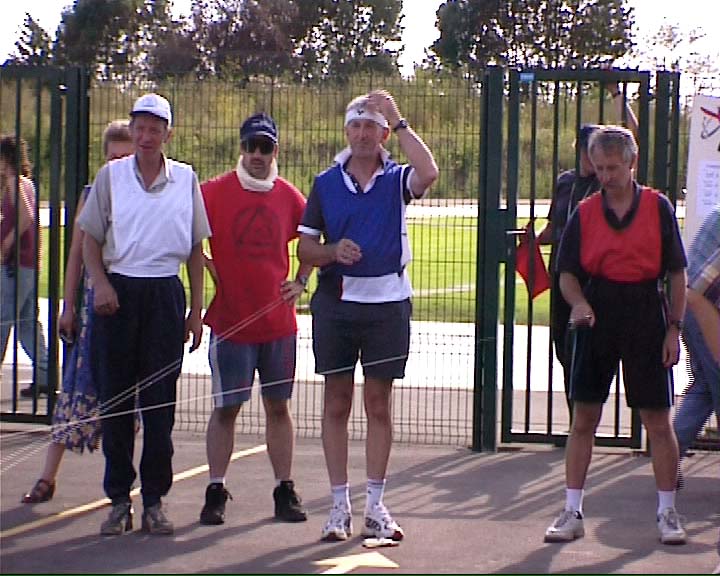 Official practice began at 13:00 on the Saturday with the first round (of three) planned for 15:00 and the second round to follow at 17:00. The first heat was rather incident prone with the Russian ex World Champion team of Titov/Yugov running in at the first pitstop, Fry/Whorton (GBR) having setting problems and Surugue/Surugue (FRA) getting disqualified for picking up the formers lines when landing after the race. This was rather unfortunate as they had put in around a 3:20 but, as Fry/Whorton were still involved in the race, the rules gave the Jury no option as no attempt had been made to overfly by the regulatory 0.5 metres. Andy Whorton should however have kept the lines on the floor and was lucky in this case to get a refly. Several teams had "run-in problems" and there was much early criticism of the new circle but there were also a number of good times recorded with the fastest being a 3:22.0 from Smith/Brown (GBR) who are still having trouble getting consistency from the new Mazniak equipment. Other good times included a 3:22.4 from Maret/Perret (FRA) and a 3:24.2 from Ross/Turner (GBR)