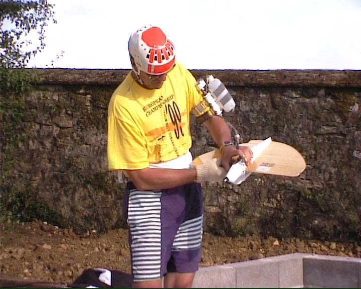 The overall result thus found me unexpectedly first by the twitch of a timekeeper's thumb from Norbert Schmitz in second place, Dave a solid third and Peter Grundel the nearest serious threat. The rest of the field never quite got to grips with their problems, though Rob Metkemeijer (fifth), a recent recruit to speed ranks, can be expected to make more of an impression when he gets into it properly. It seems to me what could help is a sort of "Fault Finder" for speed fliers - it might help get some of the less successful fliers to sort their kit out a bit better, and reduce the erosion of interest resulting from persistent disappointing results and destruction of expensive equipment. Maybe I can knock something up for the next issue if space permits.Dick McGIadderY