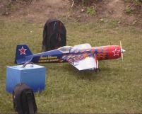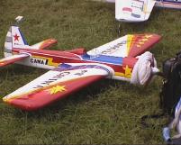 The report of the Aerobatics event cannot be closed without a mention of the model that stole the show as far as the crowd were concerned. Paul Walker (USA) brought along his semi scale B17 four engined model and, despite everyone having said it was impossible, flew it to near perfection achieving 9th place overall. When you consider that this was in competition against the worlds best with models that have evolved purely for aerobatics purposes this is quite an achievement. The model was not the easiest to fly and was "a bit quick" but the manoeuvres were spot on and the crowd roared there approval every time it flew. Several flyers were using the models produced by Yuriy Yatsenko who placed 8th for the Ukraine. These models come complete and ready to fly (all you need is some fuel) and cost in the region of £1,200 ready to go.