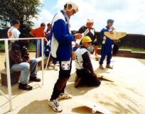 Round 4 was not to be as successful for the UK with both Mervyn Jones and Peter Grange exiting the competition, Pete losing well to an on-form Tom Fluker (USA) and Merv making the common mistake of taking the whole streamer again and suffering as a result against Peteris Brokans (LAT). Mike Whillance had a good win against Rik Olijve (NED) and became the last remaining UK flyer by going through to round 5 with a clean sheet . A protest was made by the Dutch team as the bout had been delayed due to Mike not being present on site but this was rejected as it was the first bout and very little time had been given between the draw being issued and the start of the round. Mikes lack of presence was also partly due to the flight marshals error in the previous round and the need to replace equipment damaged as a result.