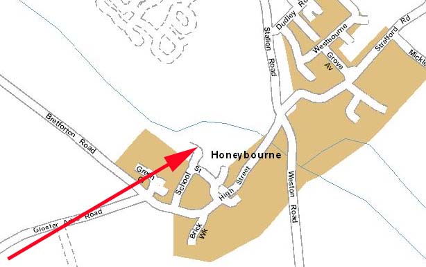 Corner Farm Drive is the small road off School Street just left of the "H" in Honeybourne on the first map below